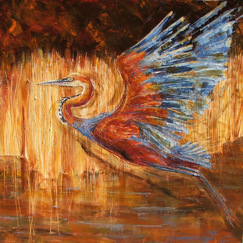 "Take Off; Goliath Heron" Acrylic on board, 760 x 760mm.