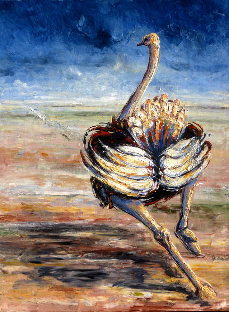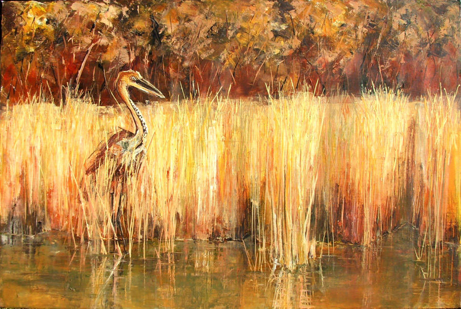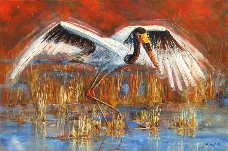"African Dance; Saddle-billed Stork". Acrylic on canvas, 760 X 510mm.